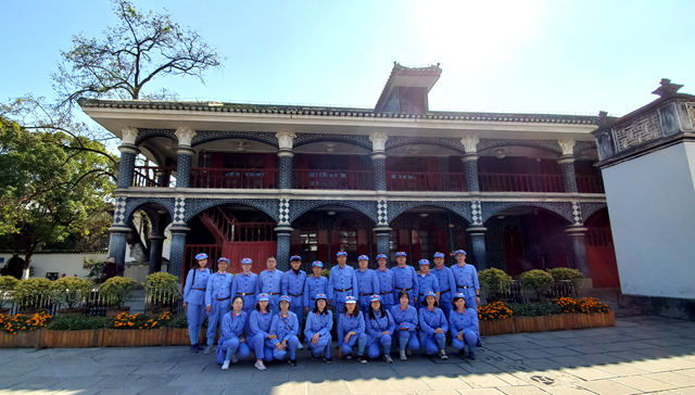 全体教师追寻习近平总书记的“红色足迹”,赴贵州省遵义市凤凰山的红军山烈士陵园进行了现场学习调研,这也是本次行程的第一站。瞻仰邓萍同志之墓,聆听年仅27岁在长征中牺牲职务最高的红军将领红三军团参谋长邓萍同志的故事,让我们铭记他为遵义战役的胜利做出的贡献。瞻仰红军英烈墙,深刻感受到革命先辈们坚忍不拔的信念,英雄可以无名,但不可以让他们无声!石碑无声,但英烈们的精神却是永放光芒的。拜谒红军坟,聆听了红军卫生员龙思泉与当地居民的感人肺腑故事,浓浓的鱼水之情,让我们牢记“全心全意为人民服务”宗旨。在女红军战士王泉媛的铜像旁,讲解老师饱含泪水深情地讲解了女红军坎坷的一生,坚忍不拔而光明面对人生,九死一生凸显巾帼不让须眉的豪情壮志。在烈士纪念碑前,感悟遵义会议精神,追溯“强渡乌江”、“遵义人民迎红军”、“娄山关大捷”和“四渡赤水”的历史。在红军烈士纪念碑前的广场,教师们敬献花篮、集体向革命烈士鞠躬致敬、集体重温入党誓词,以表达我们对在革命斗争中牺牲的无数红军烈士的崇高敬意。