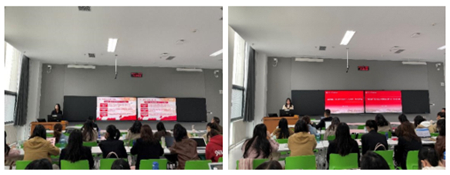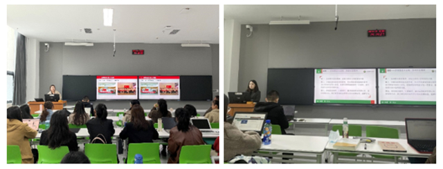 活动第二环节进行了社会实践分享。姜爱丽分享了她参加“重走长征路”四川行实践活动的经历与感受,孟珊分享了参加上海社会实践的经历,并表示通过社会实践活动形象地学习了党史,坚定了信念,明确了目标。