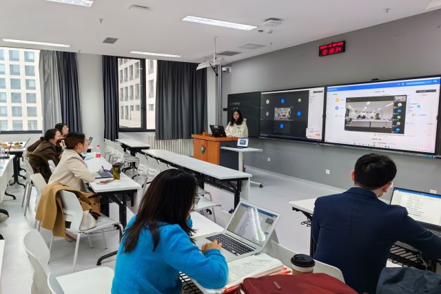 本次联学共建以学生展示、教师点评和共同讨论的方式展开。硕士生们分别以《党的二十大报告对科教兴国战略的新发展》《党的二十大报告中对中华优秀传统文化的论述》等选题内容进行了陈述,展示了思路大纲。