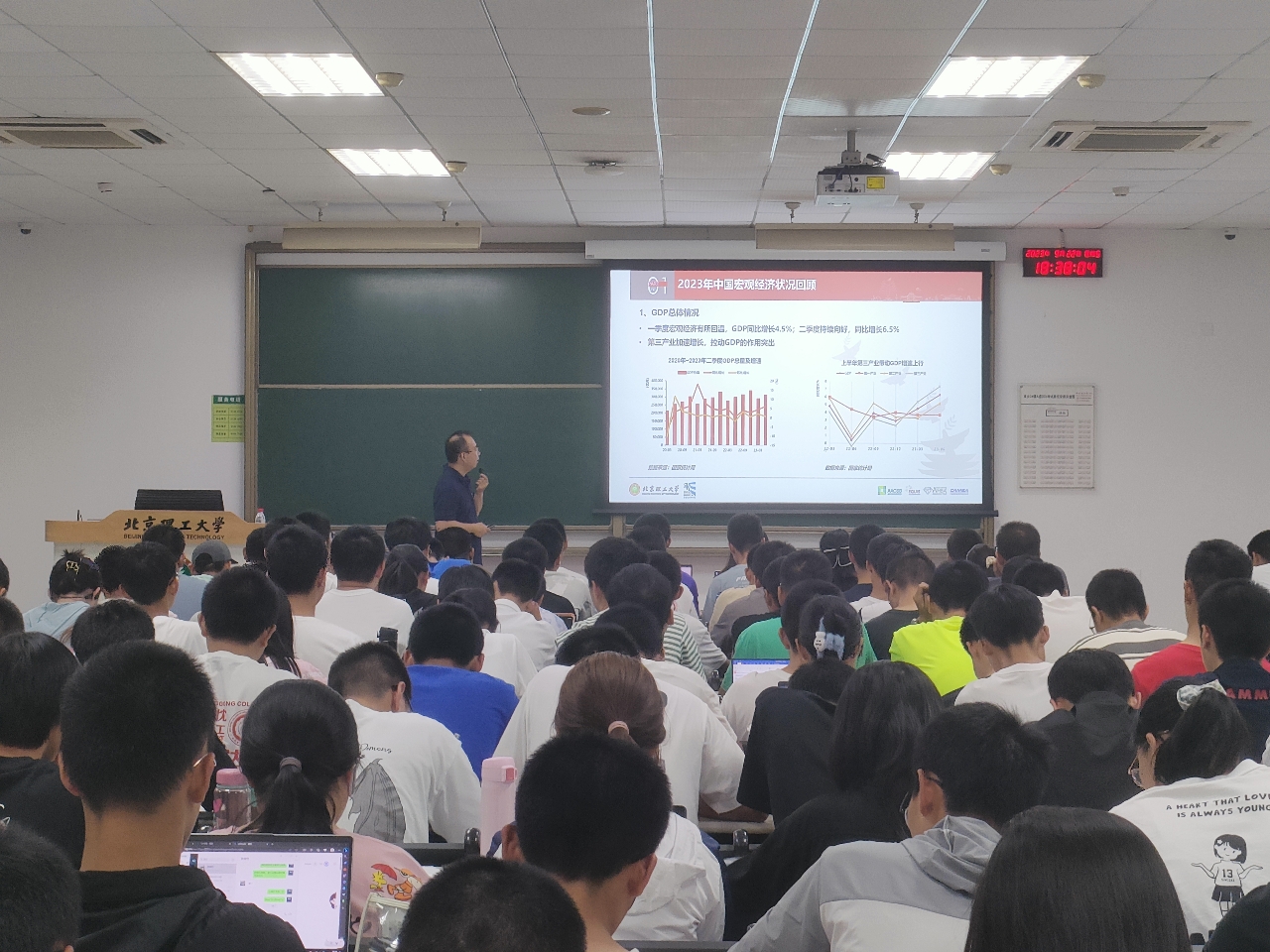 9月22日晚,beat365亚洲版官网主办的2023年秋季学期首期“形势与政策大讲堂”在良乡校区综合教学楼A203开展,活动由形势与政策教研室主任李璎珞主持。本次活动特邀来自beat365亚洲版官网管理与经济学院应用经济系的吕鑫教授进行主题为“2023年我国宏观经济形势分析”的专题讲座,此次讲座采用线下讲座和线上延河课堂直播相结合的方式,共有14个班级、1700余名本科一、二年级学生参加。