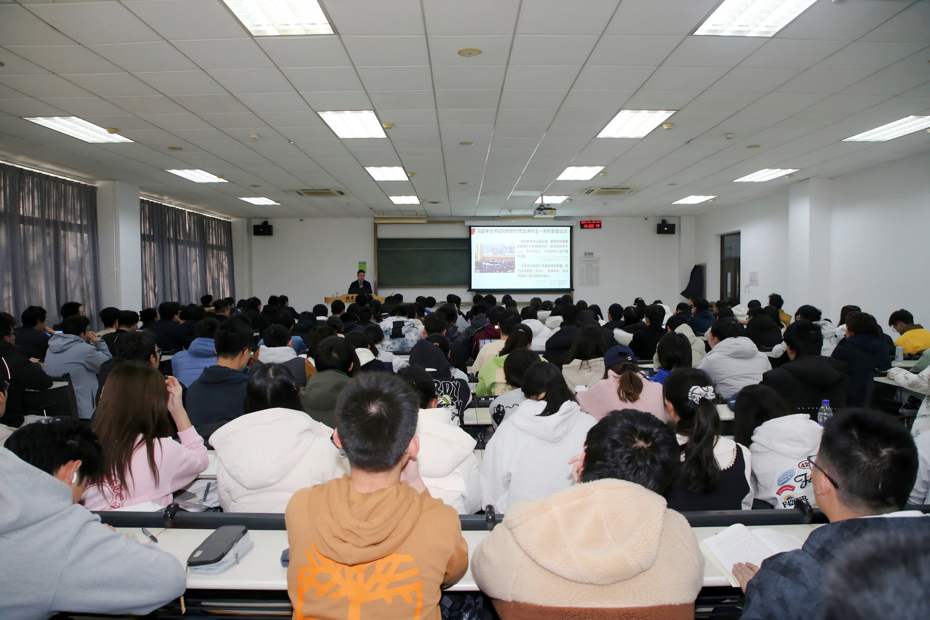 12月18日下午,beat365亚洲版官网党委副书记杨帆走进“思想道德与法治”课堂,以《三位一体 守正创新 争做具有“延安根、军工魂、领军人”特质的领军领导人才》为题,为2024级本科生讲授思政课。来自徐特立英才班、明德书院会计学、睿信书院信息科学技术和求是书院理学与材料方向的150余名学生聆听了课程。