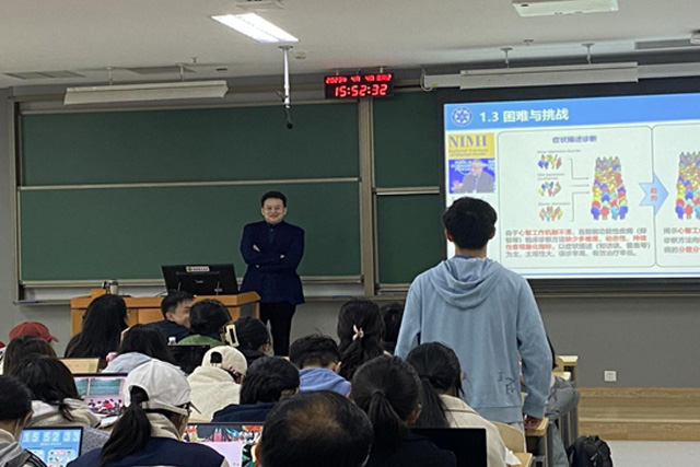 党的二十大报告指出:“坚持面向世界科技前沿、面向经济主战场、面向国家重大需求、面向人民生命健康,加快实现高水平科技自立自强”。胡斌教授以所从事的研究“心智工作机制、量化理论、方法及感知技术”为例,向同学们介绍了我国脑科学研究现状和我国“脑计划”发展目标,即为推动我国对大脑基本规律的理解、利用基础研究成果推动新技术的发展,利用基础研究成果满足人民脑健康的发展需求。胡斌教授通过自身在国外和国内开展科学研究的对比,讲述了中国特色社会主义制度“举国体制”对于科研工作发挥的优势和效能。通过讲解在脑电相关芯片被国外“卡脖子”的困难与挑战下,所在团队坚定不移推进自主创新取得技术突破的生动案例,告诉同学们要打牢专业基础,聚焦科技前沿,瞄准学科交叉,创新思路方法,为全面建设社会主义现代化强国贡献力量。