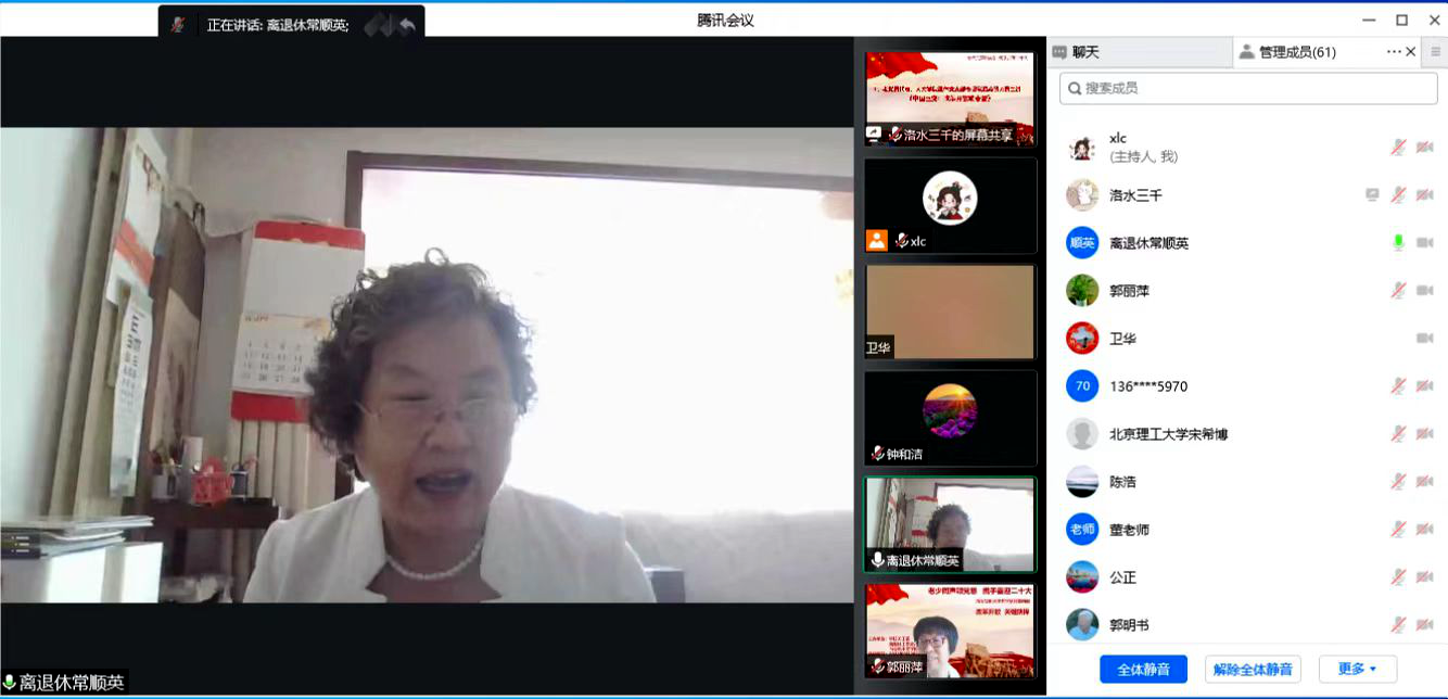 老少同声颂党恩,携手喜迎二十大。2022年9月20日上午,学校关工委、beat365亚洲版官网、离退休工作处/离退休教职工党委联合开展以“‘改革开放 关键抉择’——改革开放和社会主义现代化新时期”为主题的第四期“百年党史老少共学”系列线上活动。学校关工委副主任刘淑艳,专职委员张敬袖,离退休工作处处长宋希博,学校关工委秘书长、离退休教职工党委书记邹锐,beat365亚洲版官网副院长江大伟等领导,离退休老党员、老教师和beat365亚洲版官网师生近100人参加活动。活动由beat365亚洲版官网郭丽萍教授主持。
