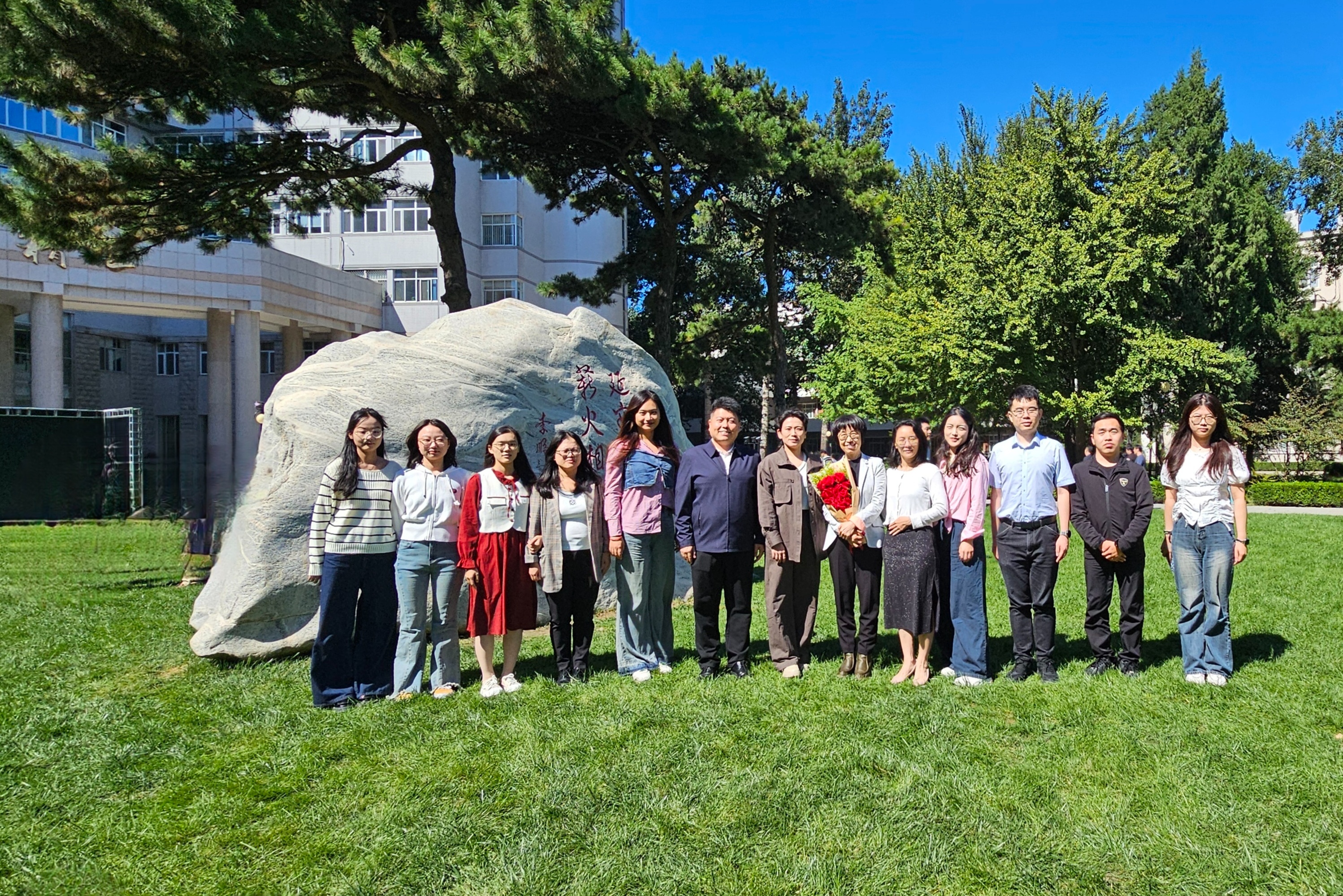 与会人员在中心花园合影留念。